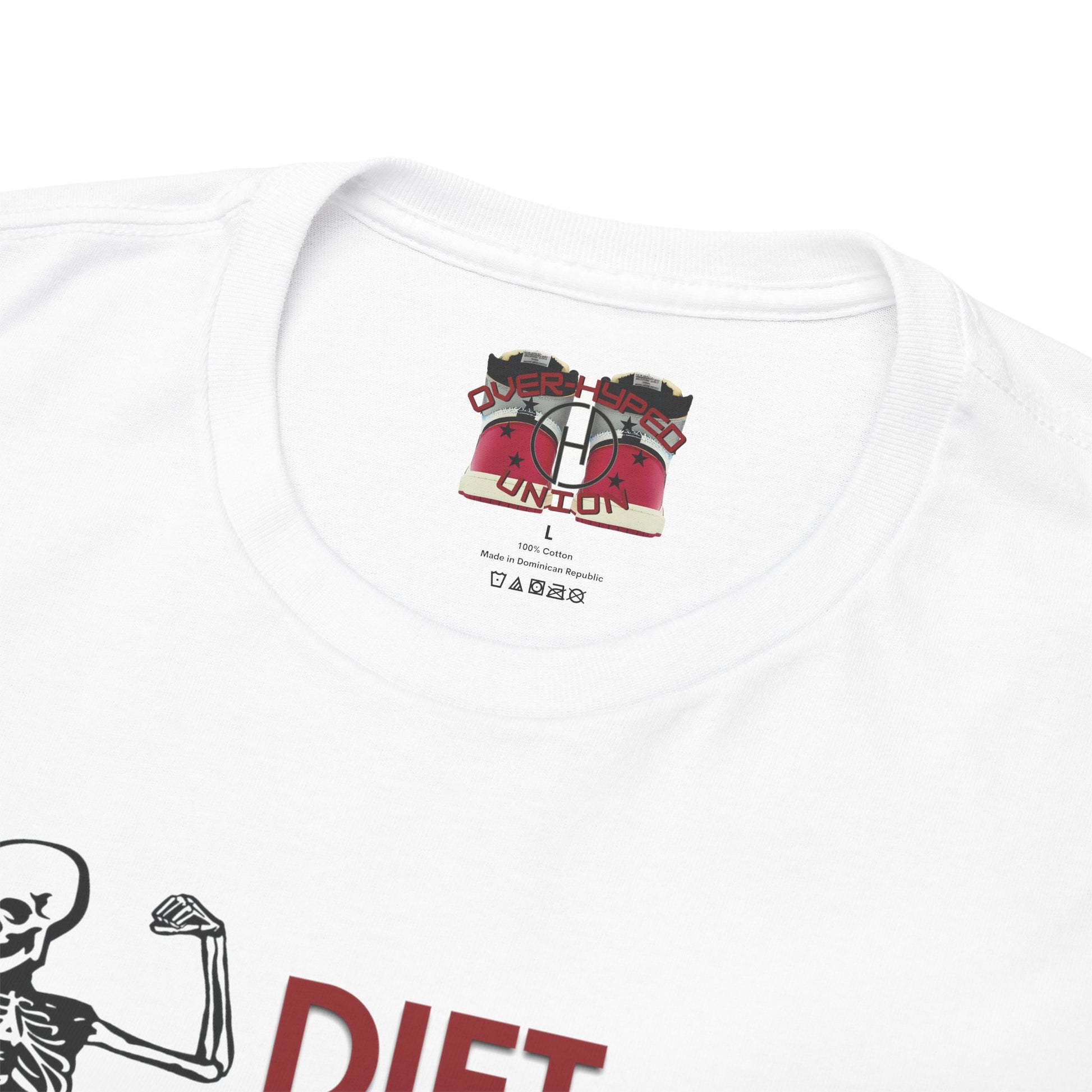 Step up your sneaker game with this Limited Edition Over-Hyped tee, designed to perfectly complement the Union LA Jordan 1 High OG SP 'Chicago Shadow'. Crafted from 100% Airlume combed and ringspun cotton, this sneaker-inspired shirt offers unbeatable comfort and style for every sneakerhead.